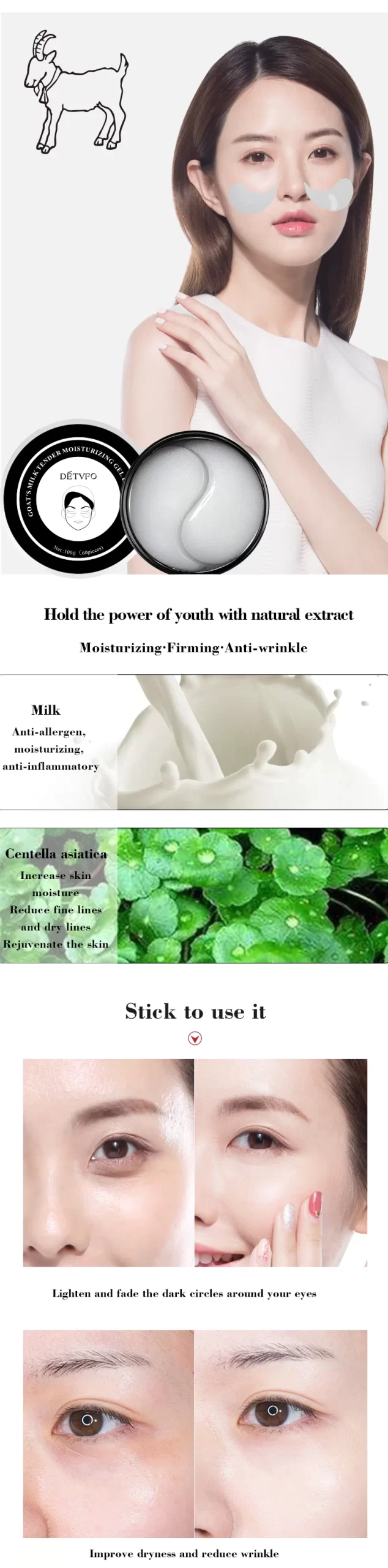 • Goat Milk Extract: Natural nourishing star ingredient, rich in milk proteins and vitamins, close to the skin’s natural sebum, deeply hydrates and brightens the under-eye skin, fades dark circles and dry fine lines, and soothes sensitive eye skin.