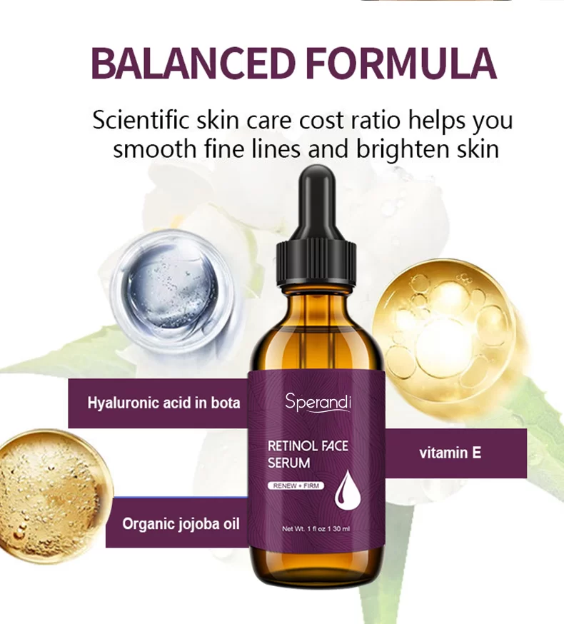 Pharmaceutical-Grade Retinol: A natural anti-aging superstar proven to boost collagen production, reduce the appearance of fine lines and wrinkles, and smooth uneven skin texture. It penetrates deep into skin layers to repair cellular damage,(delays) skin aging, and restores elasticity to sagging skin.