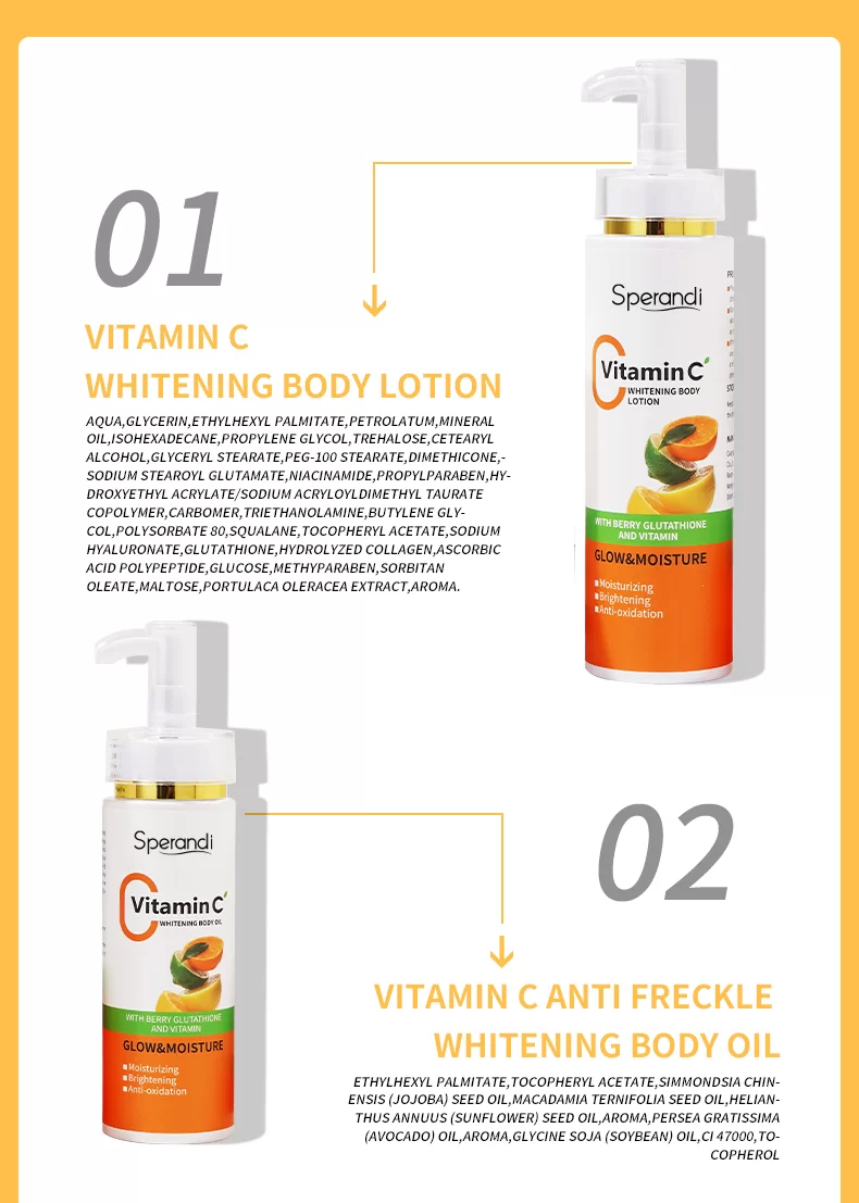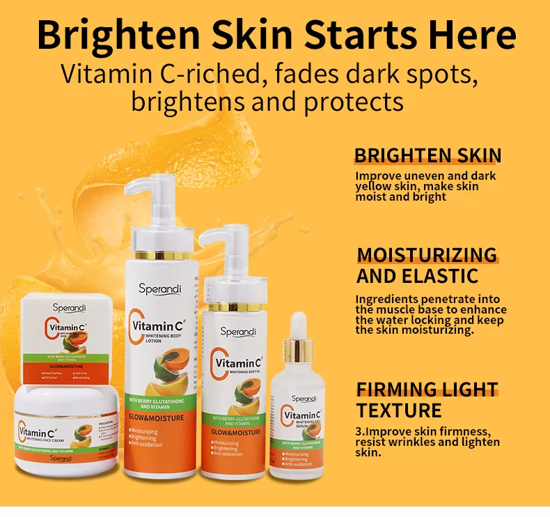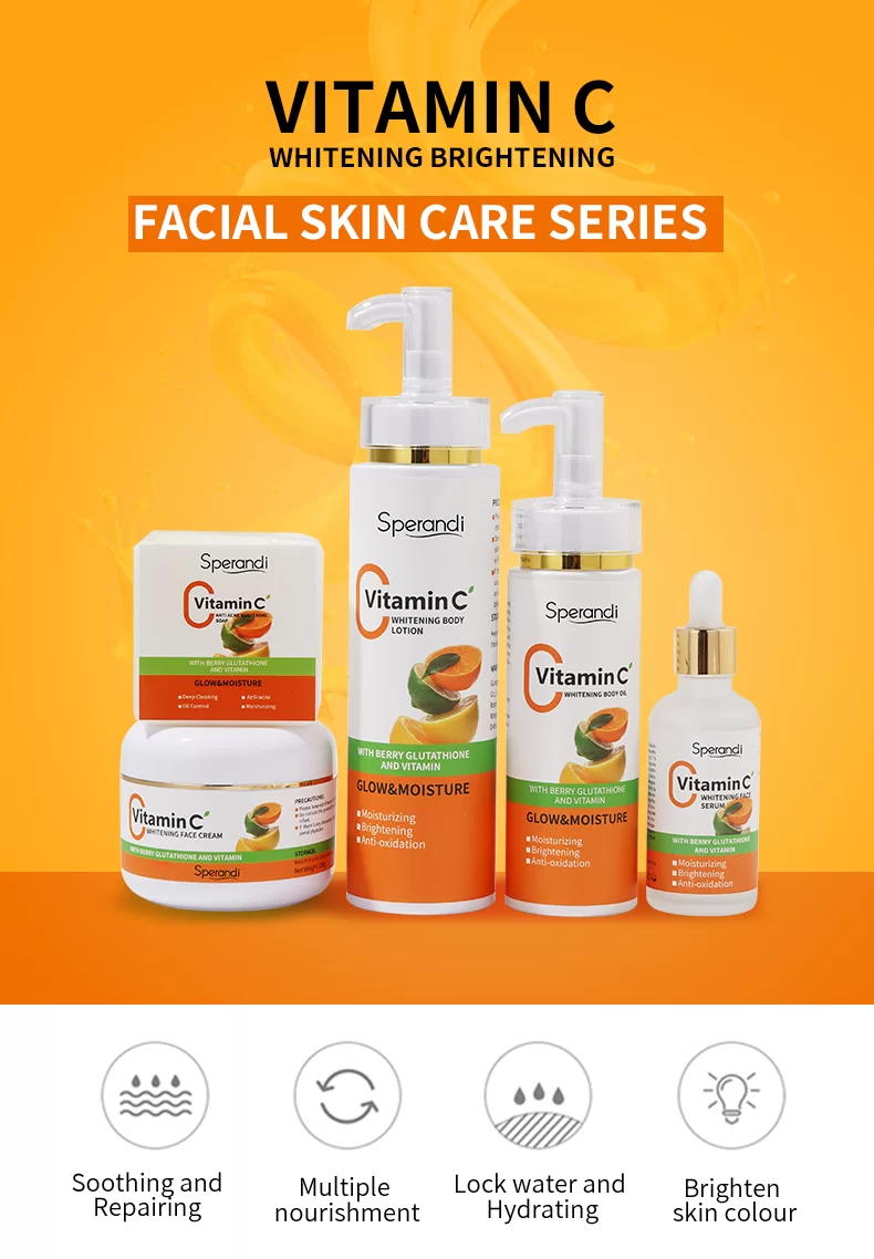 Our Vitamin C Brightening & Hydrating Skincare Set is infused with high-potency vitamin C, directly targeting dullness, uneven skin tone and dryness—common concerns for users in Europe, America, and Southeast Asia. Blended with hyaluronic acid, niacinamide and soothing plant extracts, it works synergistically to brighten complexion, deeply hydrate skin, and soothe irritation. Specially added multiple nourishing factors, it repairs damaged skin while brightening, leaving skin smooth, radiant and emitting a fresh citrus scent. Suitable for daily use in both dry European/American climates and hot, humid Southeast Asian environments.